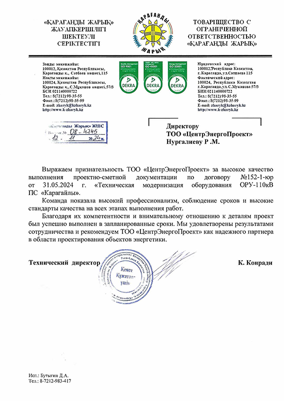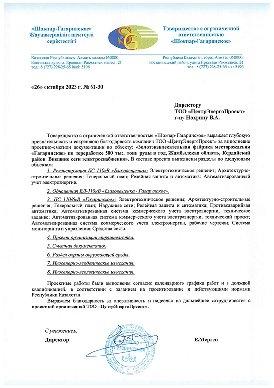 ТОО «ЦентрЭнергоПроект» выполняет работы по проектированию электросетевых и энергетических объектов сельских, городских и промышленных потребителей напряжением 6-220 кВ. Компания была образована в 2020 году и на сегодняшний день смогла зарекомендовать себя как надежный, ответственный и профессиональный партнер по оказанию услуг в сфере проектирования объектов энергетики.